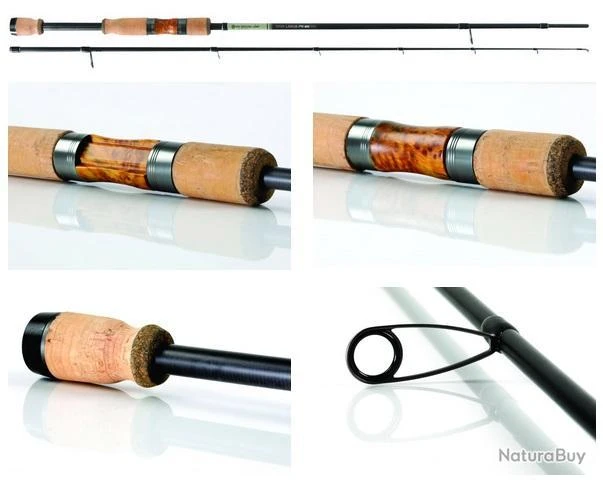 Ces cannes sont en 2 brins, construites en carbone TORAY 30 T, équipées d’une poignée liège et d’un porte moulinet avec insertion bois, et montés avec des anneaux SeaGuide selon le concept micro guide. Elles sont légères, bien équilibrées, très réactives et possèdent une excellente sonorité.