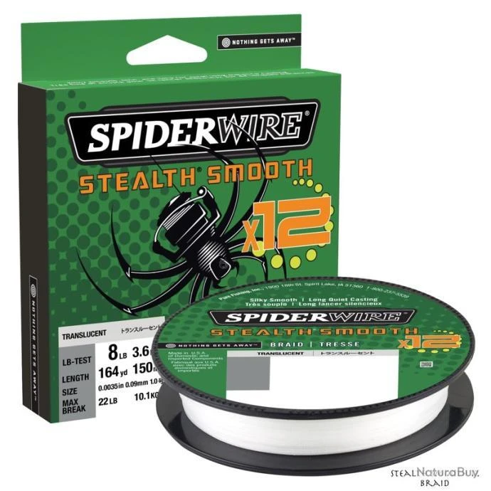 Tresse Stealth Smooth 12 Braid de chez Spiderwire, d’une longueur de 150m et déclinée en 11 diamètres différents.